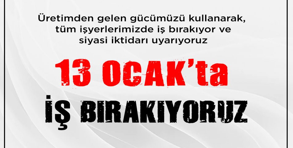 ÜRETİMDEN GELEN GÜCÜMÜZÜ KULLANARAK 13 OCAK 2025 PAZARTESİ GÜNÜ İŞ BIRAKIYORUZ