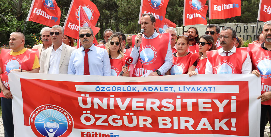 Eğitim-İş sendikamız, 2024-2025 akademik yılına ilişkin Yükseköğretim Yıl Sonu Değerlendirme Raporu’nu ODTÜ önünde yaptığı basın açıklamasıyla kamuoyuna sundu.