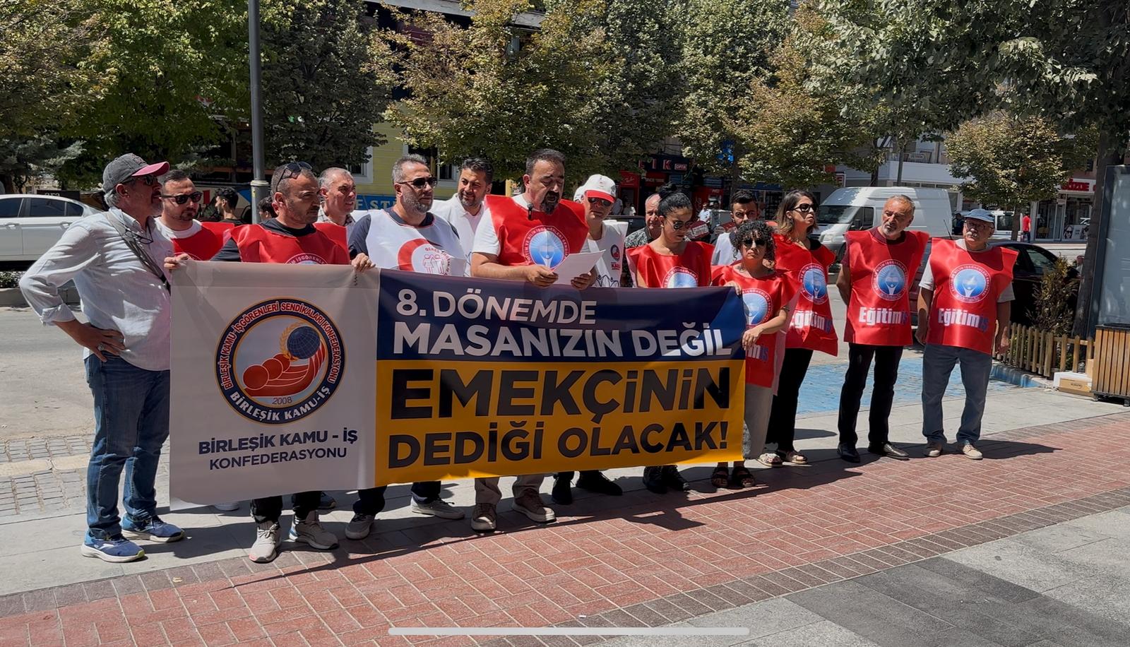 Kamu işveren heyetinin 2026’nın ilk altı ayı için yüzde 10, ikinci altı ayı için yüzde 6, 2027’nin ilk altı ayı için de ikinci altı ayı için de yüzde 4.” Sefalet zam teklifine karşı 14 Ağustos 2025 tarihinde 81 ilde yaptığımız eylemler ile Birleşik Kamu-İş Konfederasyonu olarak, kamu emekçilerinin hak ve taleplerini hiçe sayan sefalet zammına karşı sessiz kalmayacağımızım kamuoyuna duyurduk.