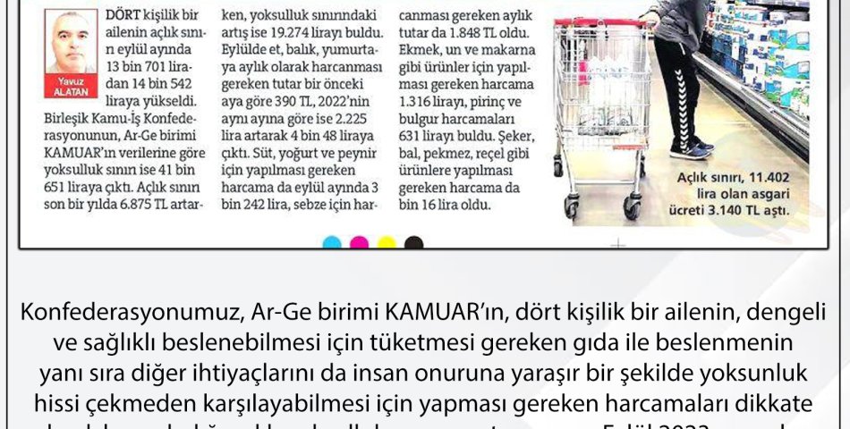 EYLÜL AYI AÇLIK SINIRI ARAŞTIRMAMIZ BASINDA GENİŞ ŞEKİLDE YER ALDI