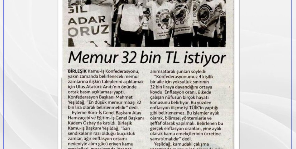 MEMURLARIN MAAŞI YOKSULLUK SINIRININ ÜZERİNE ÇIKARILMALIDIR!