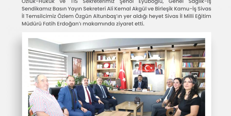 BİRLEŞİK KAMU-İŞ'TEN SİVAS İL MİLLİ EĞİTİM MÜDÜRÜ FATİH ERDOĞAN’A ZİYARET