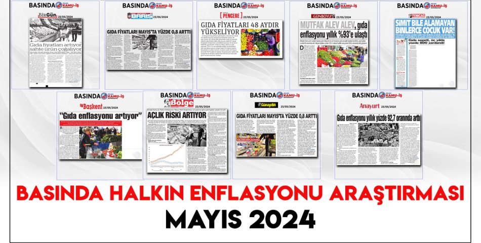HALKIN ENFLASYONU MAYIS 2024 ARAŞTIRMAMIZ BASINDA GENİŞ ŞEKİLDE YER ALDI