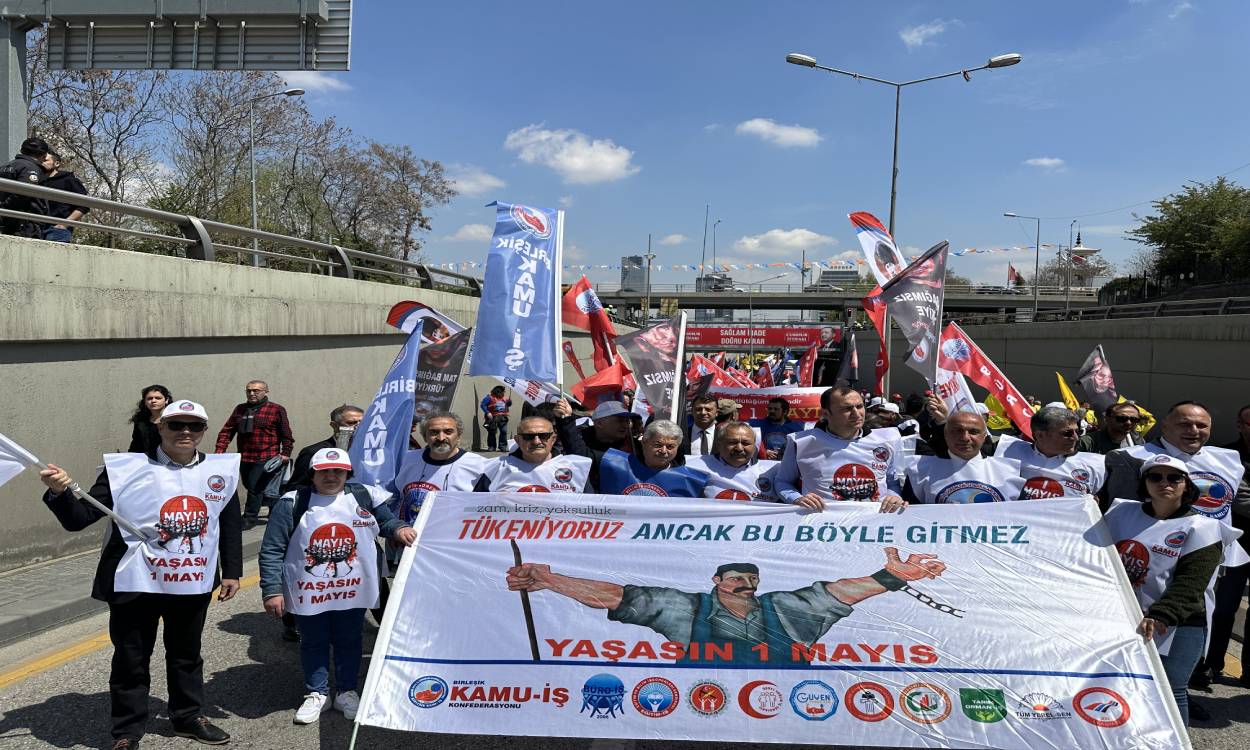 Birleşik Kamu-İş Konfederasyonun ve bağlı sendikaların kortejinde ana pankart “Zam, kriz, yoksulluk Tükeniyoruz. Ancak Bu Böyle Gitmez. Yaşasın 1 Mayıs” olurken sık sık “Gün gelecek devran dönecek AKP halka hesap verecek”, “Emek, eylem, direniş işte Kamu-İş” sloganları atarak buradan Tandoğan Meydanı’na doğru hareket ettiler.