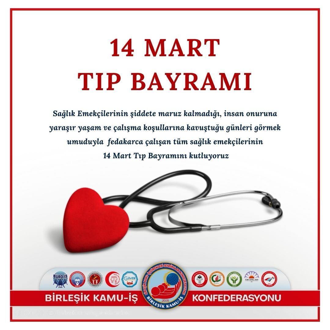 Sağlık Emekçilerinin vurulup öldürülmediği, insan onuruna yaraşır yaşam ve çalışma koşullarına kavuştuğu günleri görmek umuduyla başta Genel Sağlık-İş üyesi sağlık çalışanları olmak üzere fedakârca çalışan sağlık çalışanlarının 14 Mart Tıp Bayramını kutluyoruz...