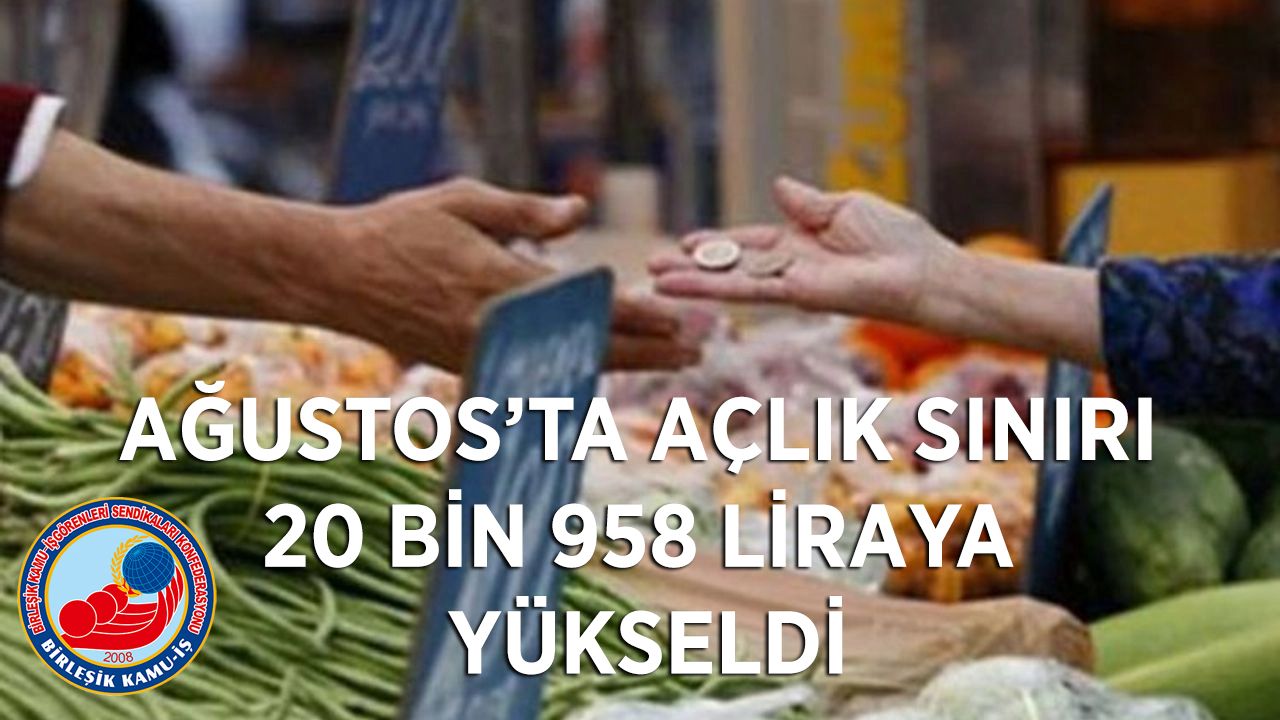 -AĞUSTOS’TA BİR ÖNCEKİ AYA GÖRE 182 LİRA DAHA ARTAN AÇLIK SINIRI 20 BİN 958 LİRAYA KADAR ÇIKTI.