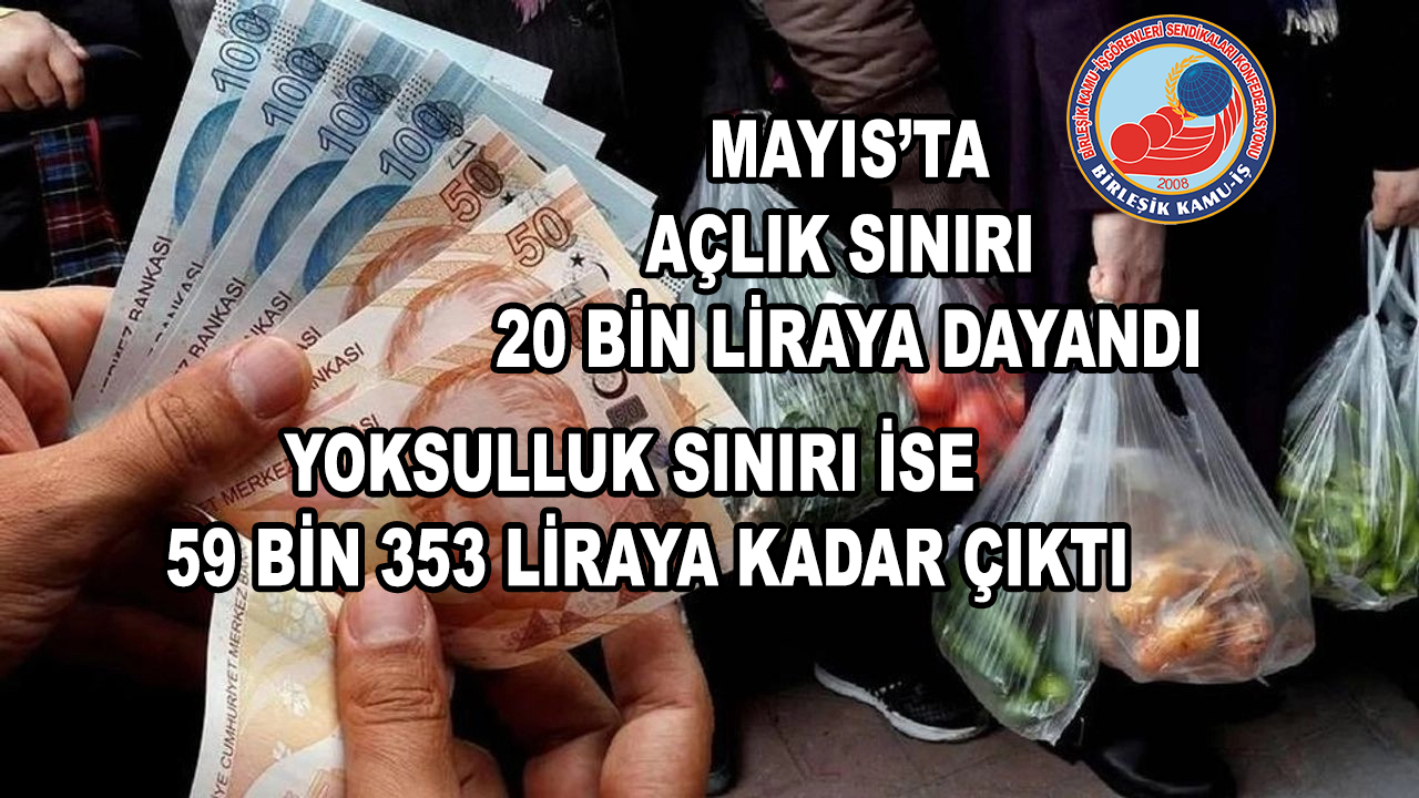 - AÇLIK SINIRI MAYIS’TA BİR ÖNCEKİ AYA GÖRE 36 LİRA DAHA ARTARAK 19 BİN 926 LİRAYA KADAR YÜKSELDİ.