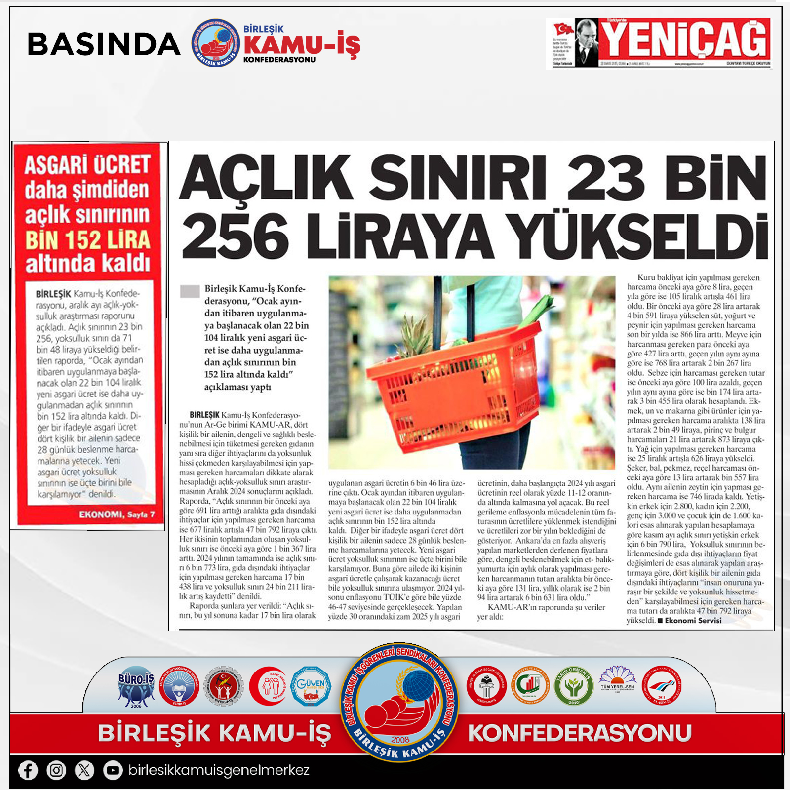 Konfederasyonumuz Arge Birimi KamuAr tarafından yapılan Açlık/Yoksulluk Sınırı Rakamları Araştırması sonuçları basında geniş şekilde yer aldı.