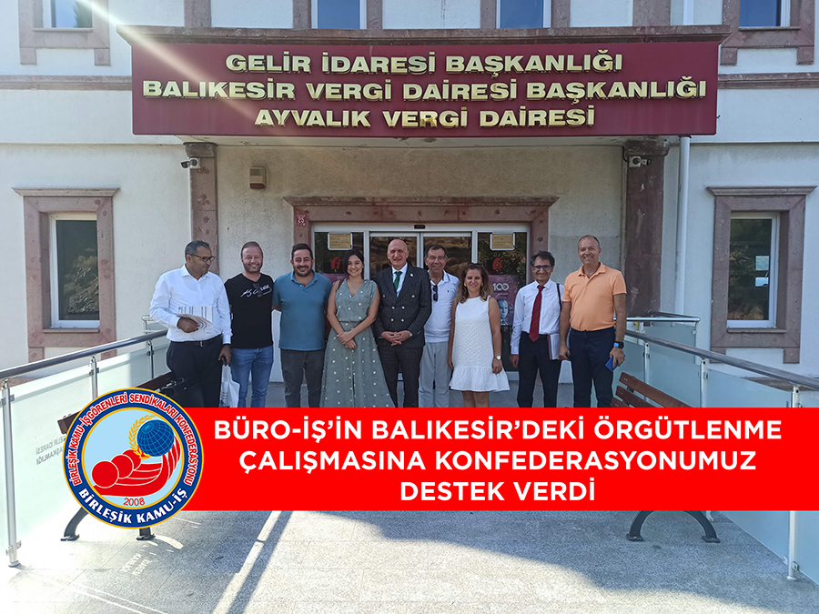 Konfederasyonumuz Birleşik Kamu-İş ile bağlı sendikamız Büro-İş, Gelir İdaresi Başkanlığı Balıkesir Vergi Dairesi Başkanlığı Ayvalık Vergi Dairesi’nde ve ilçelerinde ziyaret gerçekleştirdi. Konfederasyonumuz, sendikamızın örgütlenme çalışmasına destek verdi.