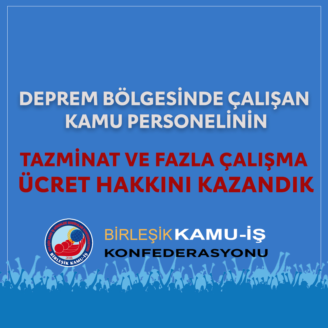 DEPREM BÖLGESİNDE ÇALIŞAN KAMU PERSONELİNİN TAZMİNAT VE FAZLA ÇALIŞMA ÜCRET HAKKINI KAZANDIK 12 Mayıs 2023, 11:49