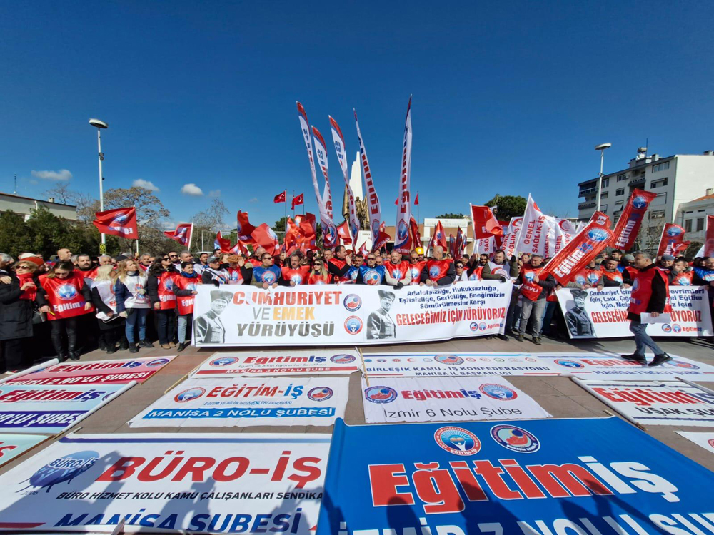 Birleşik Kamu-İş Konfederasyonu olarak, Eğitim-İş Sendikamızın düzenlediği Cumhuriyet ve Emek Yürüyüşü kapsamında Manisa’da bir araya gelerek, emeğin ve mücadelenin laiklik ile eşitlikten ayrılmaz olduğunu vurguladık.