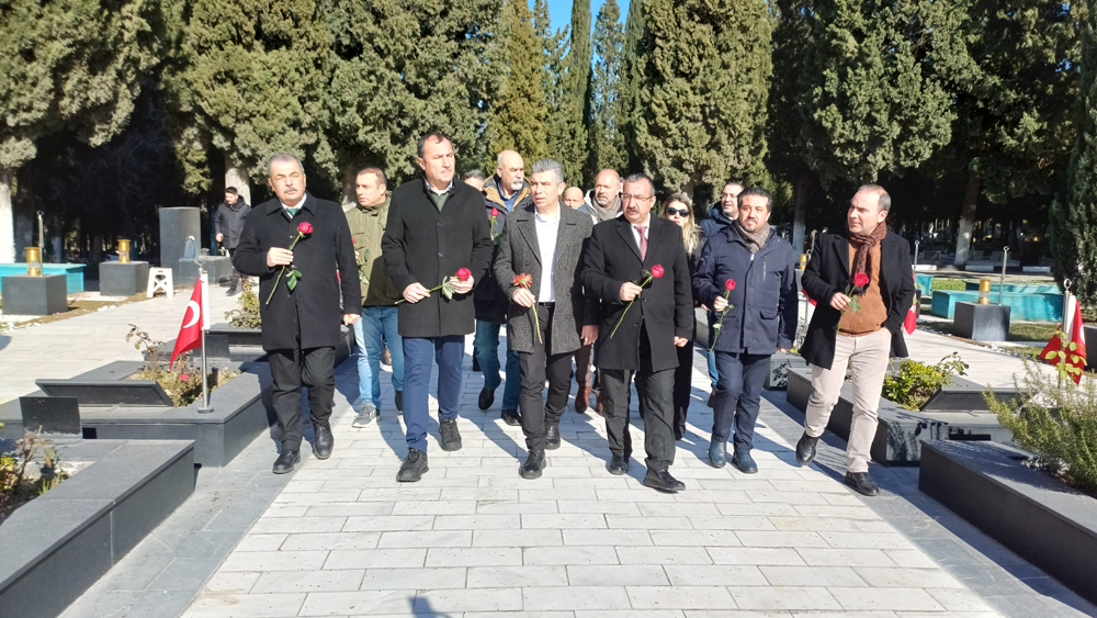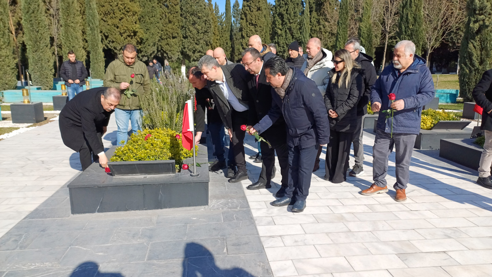 Manisa’daki açıklamanın ardından Soma Belediye Başkanı Sercan Okur’un da katılımıyla Madenci Şehitliği ziyaret edilerek, şehitlerin mezarlarına karanfil bırakıldı.