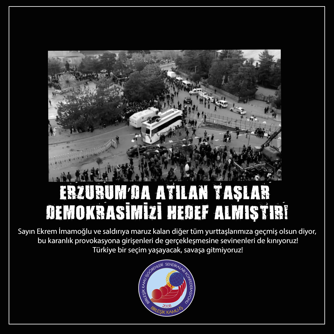 İstanbul Büyükşehir Belediye Başkanı ve Millet İttifakı’nın Cumhurbaşkanı Yardımcısı Adayı Ekrem İmamoğlu’nun Erzurum’da düzenlediği mitinge provokatif ve planlı bir şekilde saldırı düzenlenmiştir. Anayasal hak ve siyasi partiler kanunu çerçevesinde düzenlenecek mitingin alanını AKP’li belediyenin otobüsleri park ederek gasp etmesiyle başlayan gerilim, sonrasında yaşanan taşlı saldırıyla zirve yapmıştır. Hem İmamoğlu ve yanındakiler, hem onları dinlemeye gelen onlarca yurttaş yaralanmıştır.