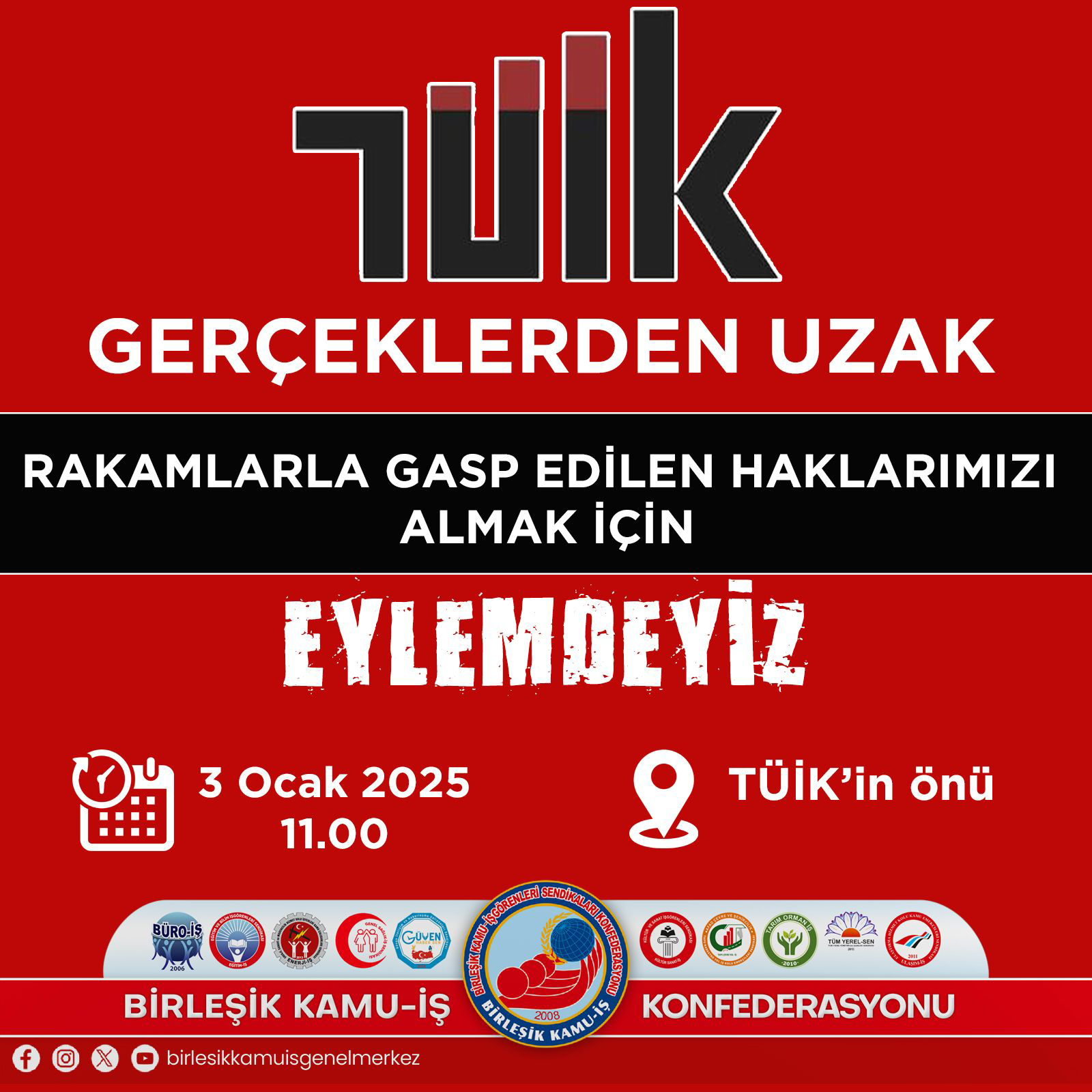 GERÇEKLERDEN UZAK RAKAMLARLA HAKLARIMIZI GASP EDEN TÜİK ÖNÜNDE OLACAĞIZ 02 Ocak 2025, 07:23