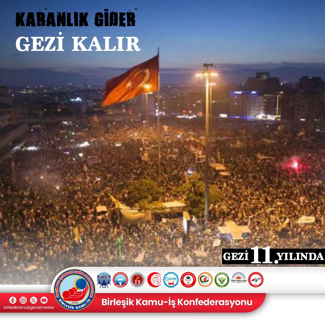 Birleşik Kamu-İş Konfederasyonu olarak; Gezi direnişinin 11. yıl dönümünde Gezi’nin anlamına, ruhuna ve değerlerine sahip çıkıyoruz.