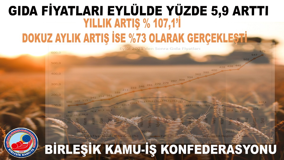 Birleşik Kamu-İş Konfederasyonu Ar-Ge birimi KAMUAR, fiyatlarını Ankara’daki marketlerden düzenli olarak derlediği ve halkın en fazla tükettiği 64 temel gıda maddesinden oluşan bir sepeti esas alarak hazırladığı gıda fiyatları endeksinin Eylül 2023 sonuçlarını açıkladı.