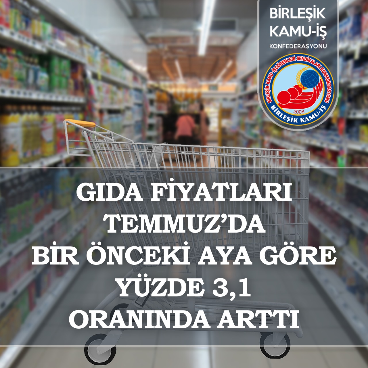 Vatandaşlar mevcut gıda tüketim alışkanlıklarına göre seçilen 64 gıda maddesinden oluşturulan gıda sepetini satın alabilmek için Temmuz’da, bir önceki aya göre yüzde 3,1 oranında daha fazla para ödemek zorunda kaldı.