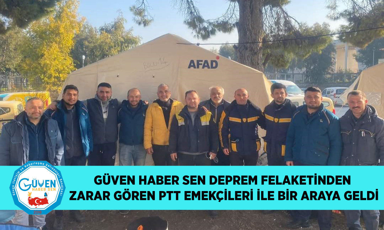 Birleşik Kamu İş Konfederasyonuna bağlı olup haberleşme iş kolunda örgütlü olan Güven Haber Sen Sendikası Genel Başkan Ali KÖSE; Güven Haber Sen olarak Hatay PTT Başmüdürlüğüne bağlı ilçelerde yapmış oldukları örgütlenme ve destek ziyaretleri kapsamında deprem felaketinden zarar gören PTT emekçileri ile bir araya gelerek emekçilerle bir dizi görüşmeler yaptı. PTT emekçilerinin Hatay'da yaşadığı problemleri birinci ağızdan dinleyen KÖSE; her koşulda PTT emekçilerinin sesi olmaya devam devam edeceklerini ifade etti.
