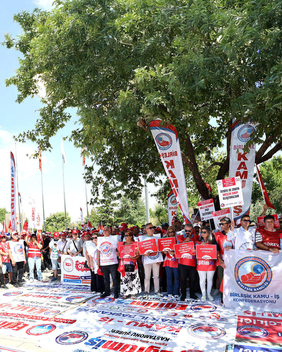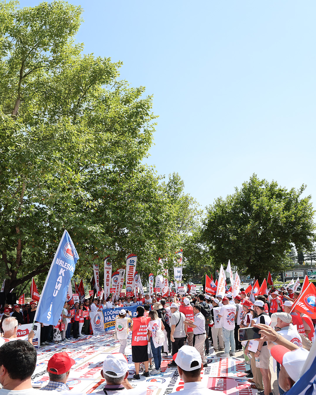 Buradan sesleniyoruz: Bizlere hakkımızı vereceksiniz. Bunu örgütlü gücümüzle, kararlı mücadelemizle söke söke alacağız! Sizler kamu emekçilerini sağa sola yerleştirdiğiniz yandaş mensuplarınızla karıştırmayın. Bizde biat yok, bizde teslimiyet yok; mücadele var, kararlılık var.
