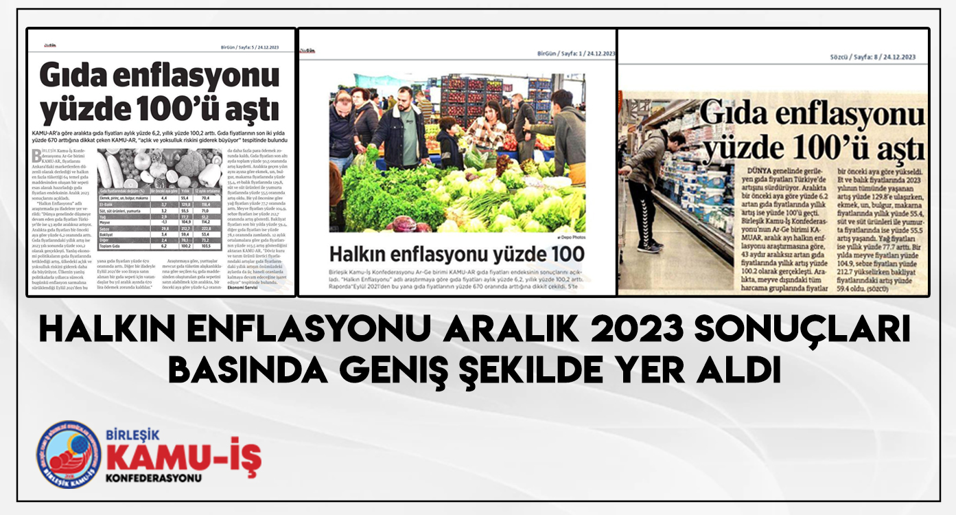 HALKIN ENFLASYONU ARALIK 2023 SONUÇLARI BASINDA GENİŞ ŞEKİLDE YER ALDI-25.12.2023 25 Aralık 2023, 16:11