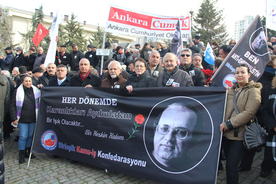 Birleşik Kamu-İş Konfederasyonu Genel Başkanımız Mehmet Yeşildağ, Genel Mali Sekreterimiz Hasan Kütük, Tüm Yerel-Sen Genel Başkanımız Mücahit Dede ve Birleşik Kamu-İş MYK üyemiz Mücahit Dede, Birleşik Kamu-İş Ankara İl Başkanımız Doğan Dağdelen, Genel Sağlık-İş Genel Başkanımız Derya Uğur, Büro-İş Genel Başkanımız Alay Hamzaçebi, bağlı sendikalarımızın MYK üyeleri ve üyelerimiz, Mumcu’nun ölümünün 31.yılı anma etkinliğinde hazır bulundular.