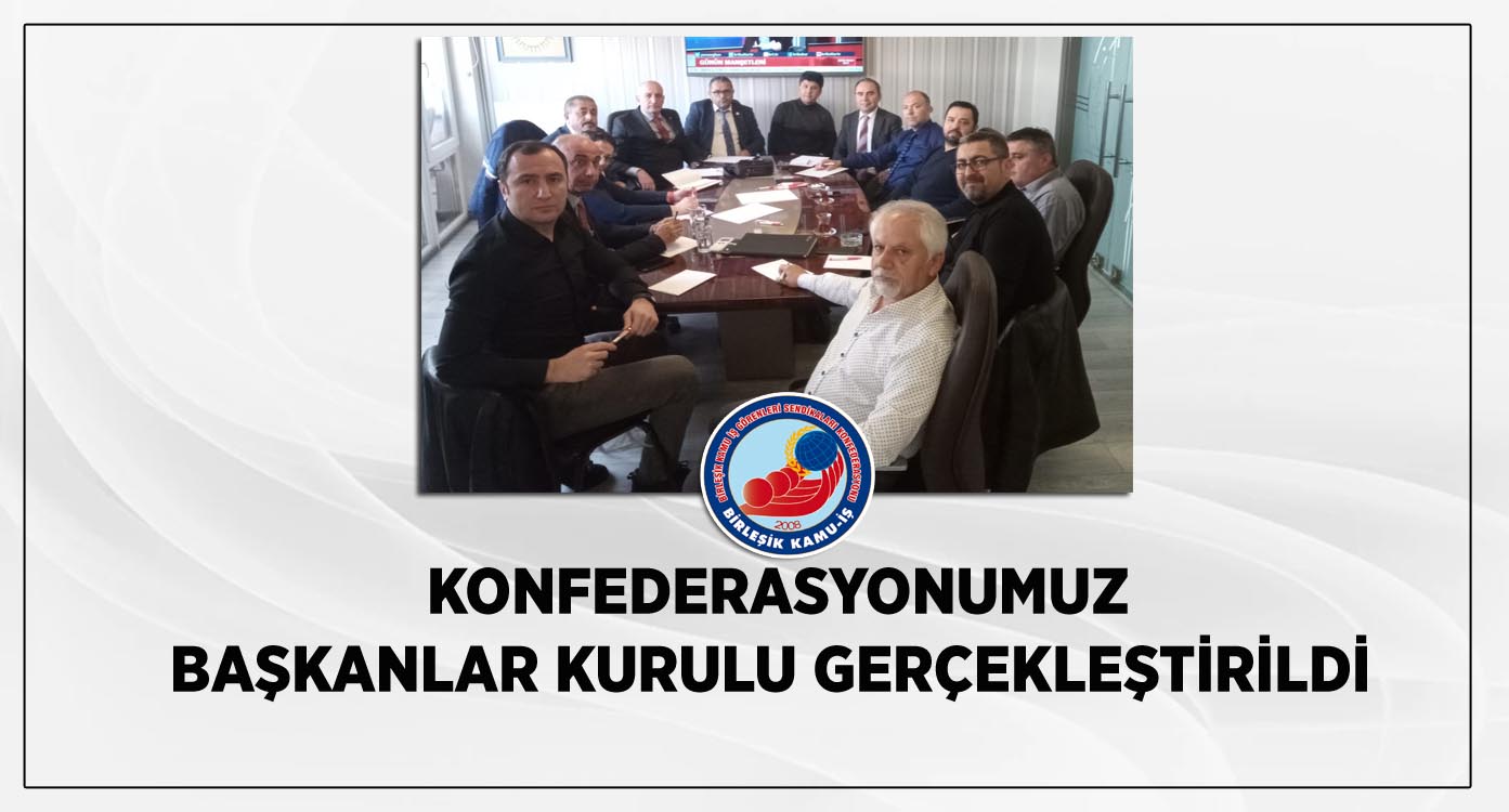 Başkanlar Kurulu Toplantısı; Genel Başkanımız Mehmet YEŞİLDAĞ başkanlığında Konfederasyonumuz Genel Merkez Yöneticilerinin katılımı ile gerçekleştirilmiştir. Toplantıya konfederasyonumuza bağlı sendikaların genel başkanları ve merkez yönetim kurulu üyeleri de katılmıştır.