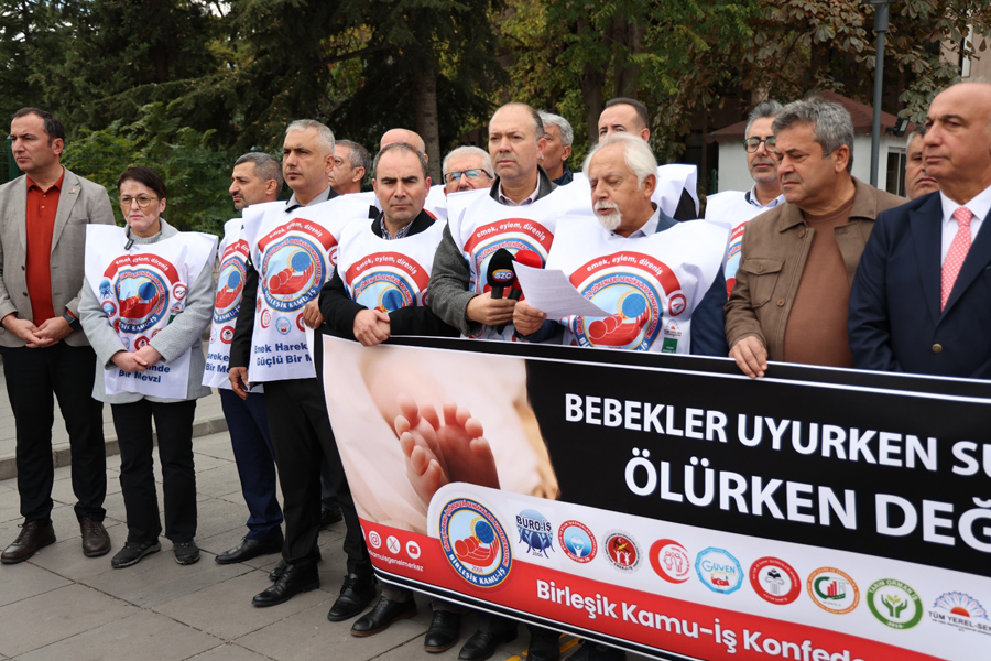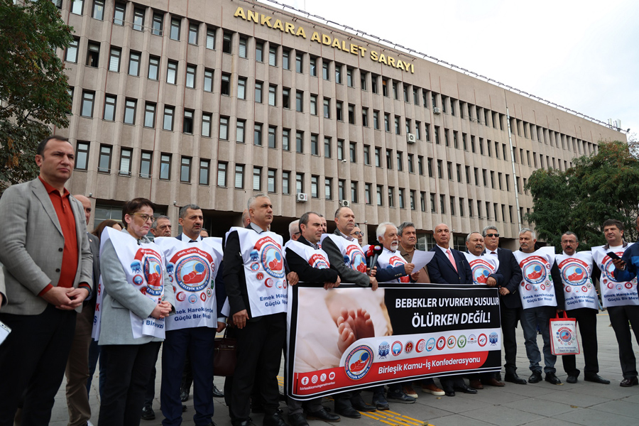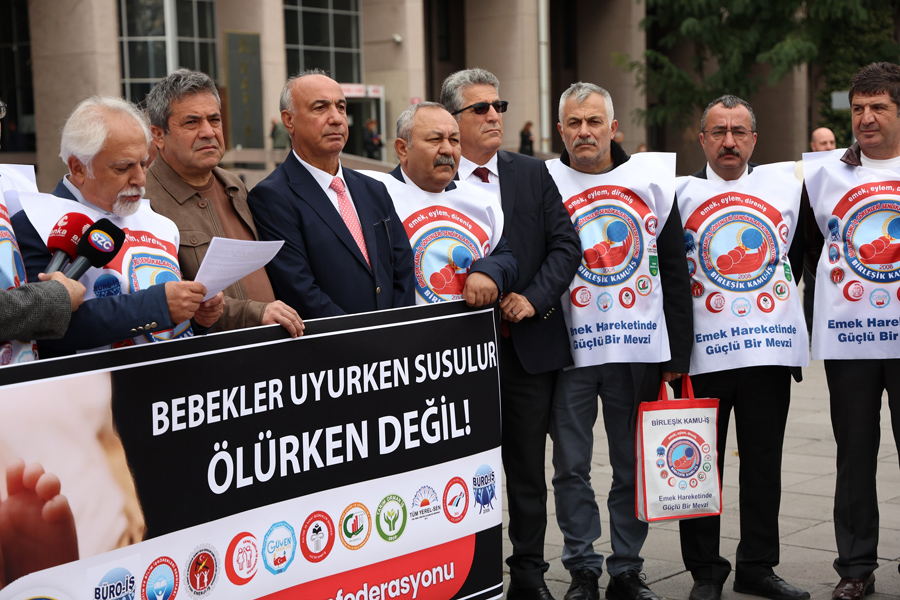 Konfederasyonumuz Birleşik Kamu-İş ve bağlı sendikalarımızla, özel hastanelerin yenidoğan ünitelerinde yaşanan bebek ölümlerine ilişkin basın açıklaması gerçekleştirerek Sağlık Bakanı Kemal Memişoğlu hakkında ve sorumlular hakkında suç duyurusunda bulunduk.