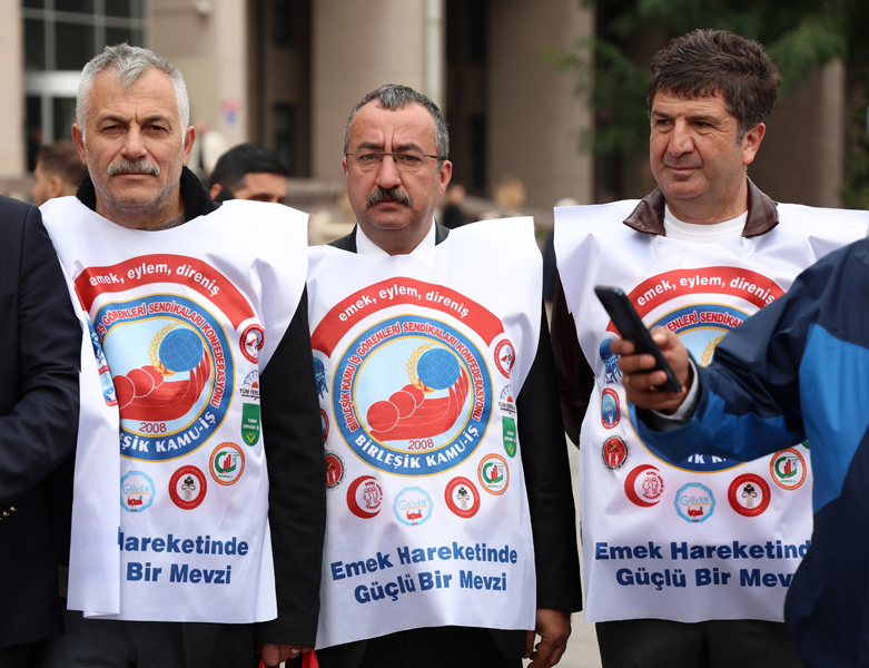 Ankara Adliye Sarayı önündeki açıklamaya Konfederasyonumuz Birleşik Kamu-İş Genel Başkanı Mehmet Yeşildağ, Genel Sekreterimiz Özgür Aras, Genel Mali Sekreterimiz Hasan Kütük, Genel Örgütlenme Sekreterimiz Şükrü Balun, Genel Eğitim, Basın-Yayın Sekreterimiz Ahmet Kürtül, Tüm Yerel-Sen Genel Başkanımız ve MYK üyemiz Mücahit Dede, Eğitim-İş Genel Başkanı Kadem Özbay, Genel Sağlık İş Genel Başkanımız Dr. Derya Uğur, Büro-İş Genel Başkanı Alay Hamzaçebi, Güven Haber-Sen Genel Başkanı Mustafa Yiğit, bağlı sendikaların MYK üyeleri ve üyelerimiz katıldılar.