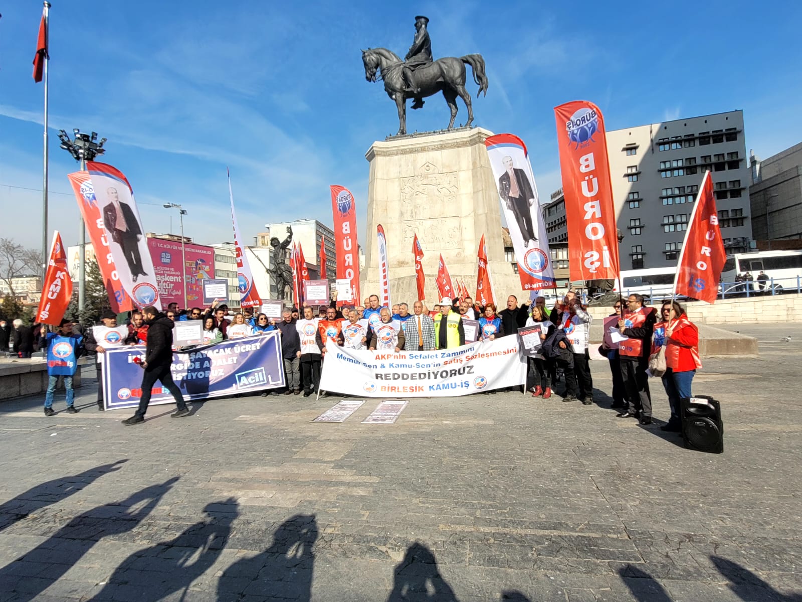 Artan enflasyon oranları ile her geçen gün yoksullaşan kamu çalışanlarına yandaş sendikaların alkışları eşliğinde verilen yüzde 30 zam oranına karşı bağlı sendikalarımızla birlikte Ulus Atatürk Anıtı önünde bordro yakma eylemi gerçekleştirdik.