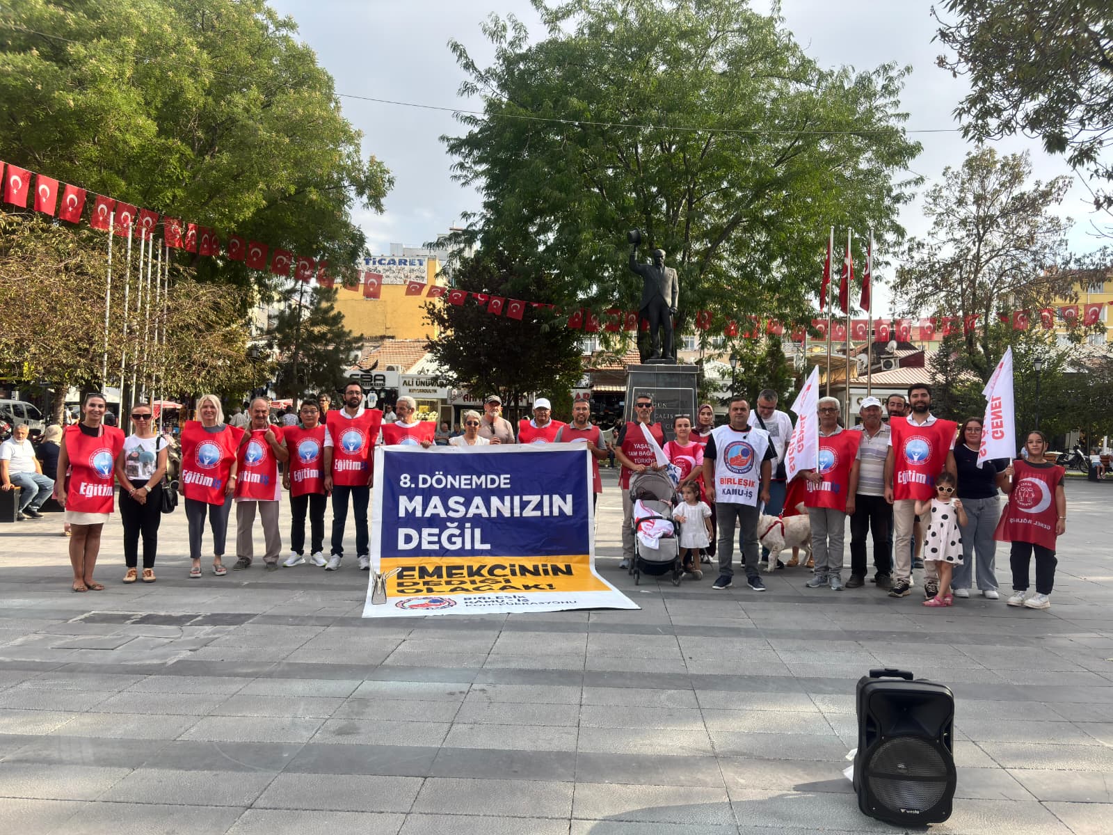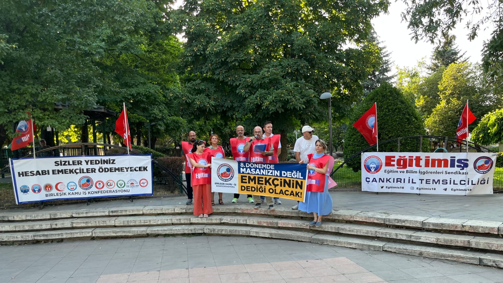 Kamu emekçilerinin ve emeklilerinin insanca yaşayabilecekleri ücret ve çalışma koşullarına kavuşması için mücadelemizi kararlılıkla sürdüreceğimizi bir kez daha alanlarda haykırdık. 18 Ağustos Pazartesi günü saat 11.00’de Ankara Anıt Park’ta bir araya gelerek Çalışma Bakanlığı’na yürüyeceğimizi ifade ederek Tüm emekçileri ve emeklileri eylemimize destek vermeye davet ettik