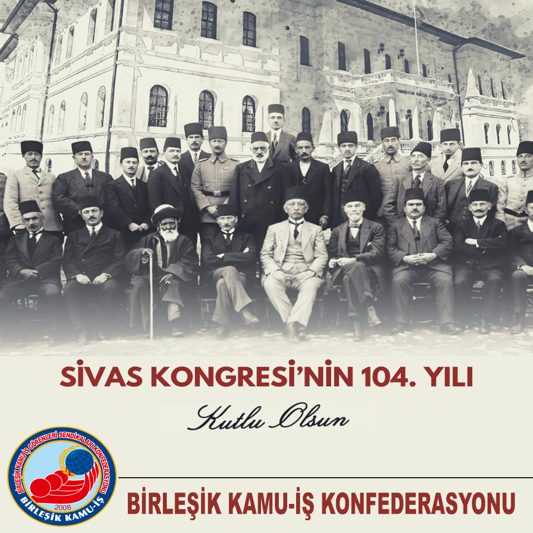 Birleşik Kamu-İş Konfederasyonu olarak: “Ya İstiklal Ya Ölüm!” diyerek tam bağımsız Türkiye Cumhuriyeti’nin temellerinin atıldığı Sivas Kongresi’nin 104. yıl dönümünü kutluyoruz; başta Gazi Mustafa Kemal Atatürk ve silah arkadaşları olmak üzere tüm şehitlerimizi saygı ve rahmetle anıyoruz.