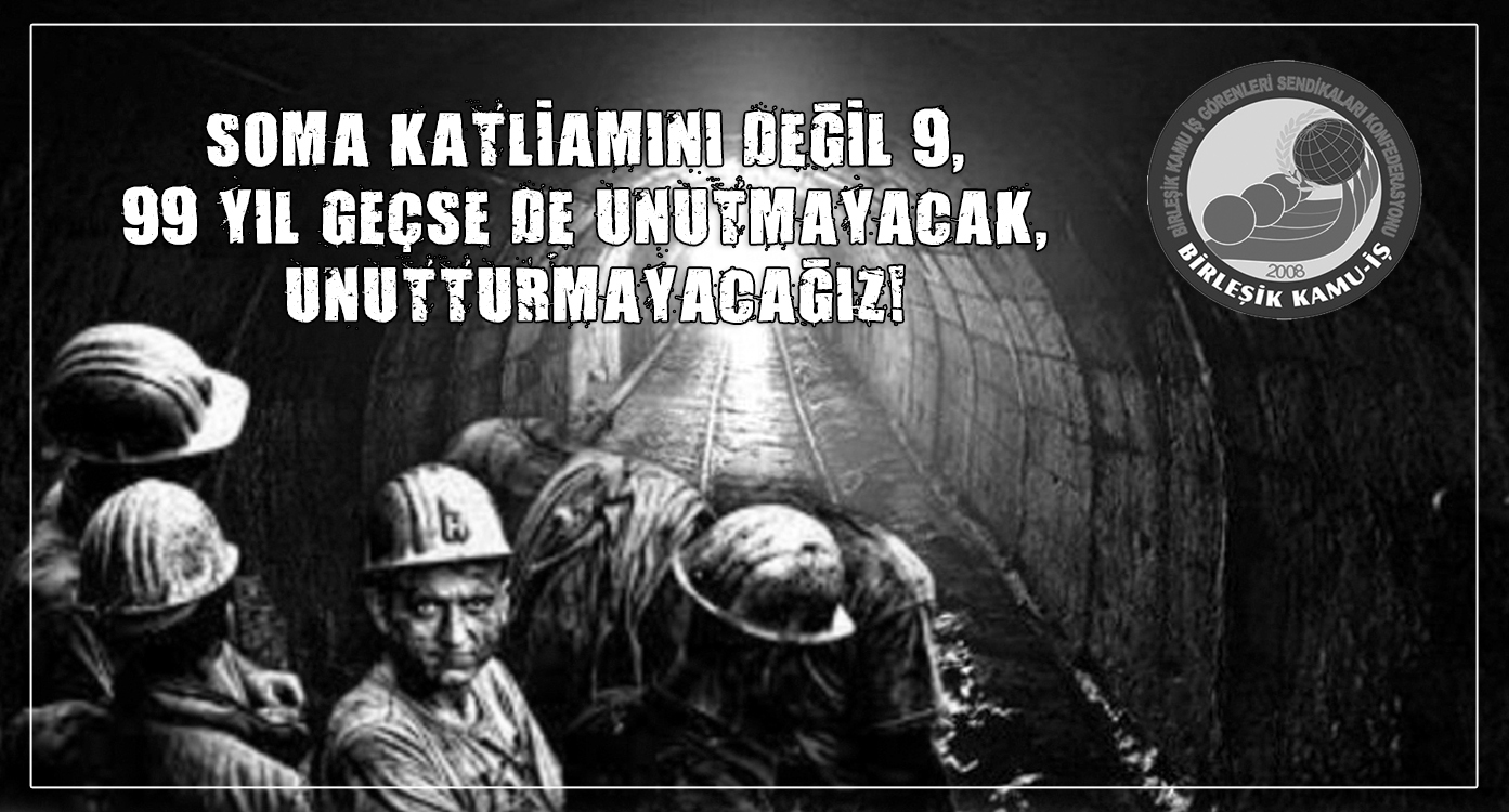 Birleşik Kamu-İş olarak Soma başta olmak üzere tüm iş cinayetlerinde yaşamını kaybeden işçi kardeşlerimizi saygıyla anıyor, emeğin karşılığını aldığı, ağır çalışma koşulları, işçi kıyımları ve taşeronlaştırmanın son bulduğu hakça bir düzen için özgürlük mücadelesini yükseltmek gerektiğini vurguluyoruz.