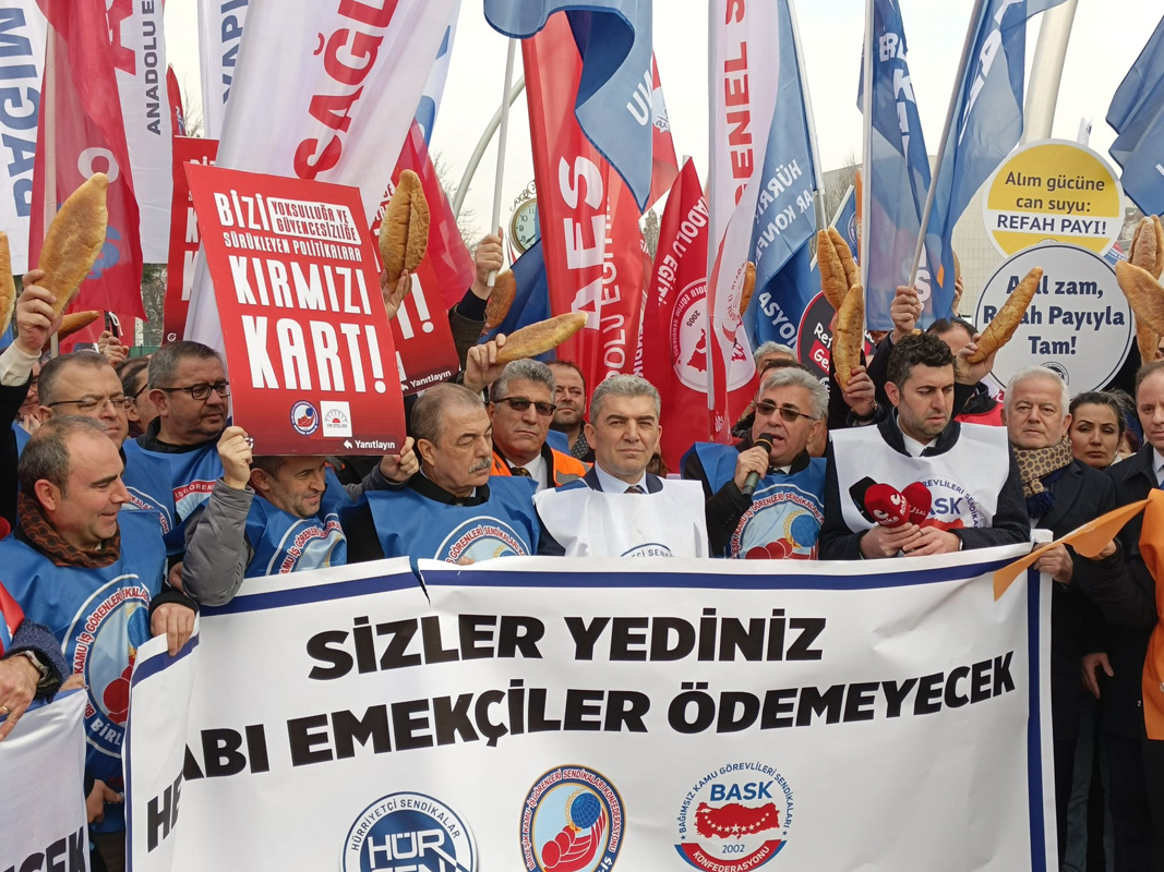- Yandaş sendikaların dilenci gibi refah payı talebine karşı, gerçek bir toplu sözleşme mutabakatı sağlanmalıdır. Alacağımız her zam taban aylığımıza ve emekliliğimize yansıtılmalıdır.