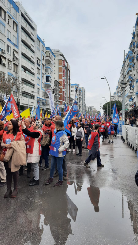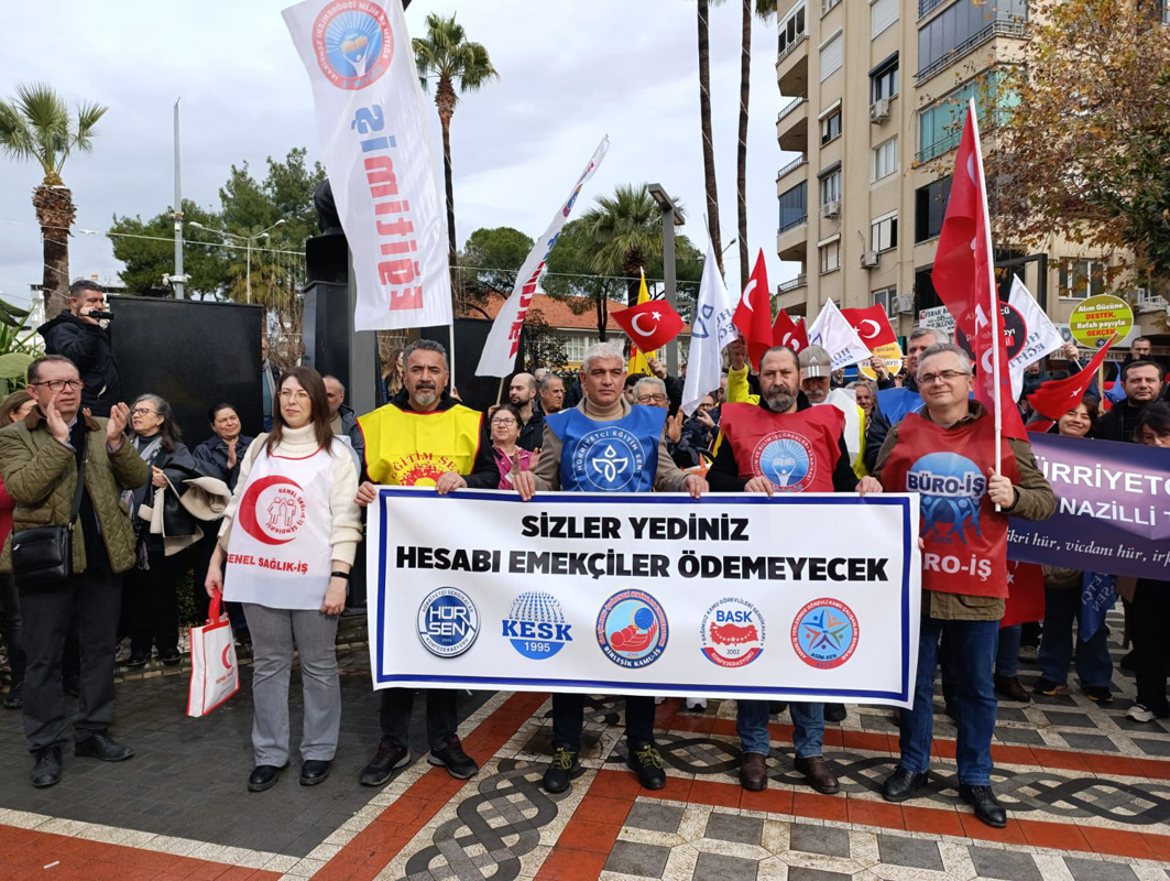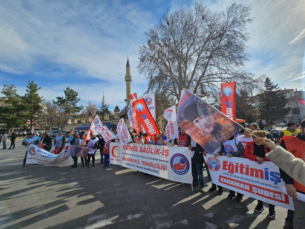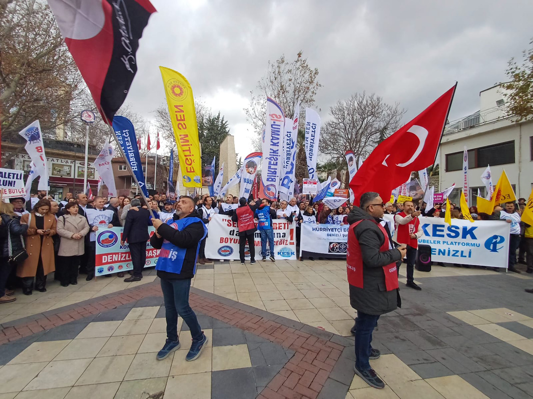 Bugün, emeğimizin değersizleştirilmesine, yaşam şartlarımızın ağırlaştırılmasına, yoksullaştırılmamıza ve insanca yaşam hakkımızın hiçe sayılmasına karşı ülkemizin her köşesinde alanlardayız.