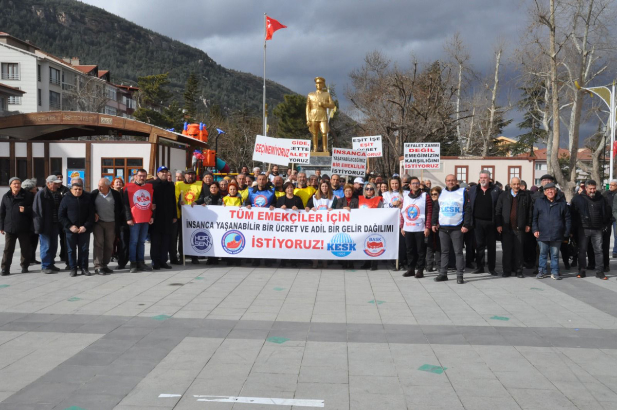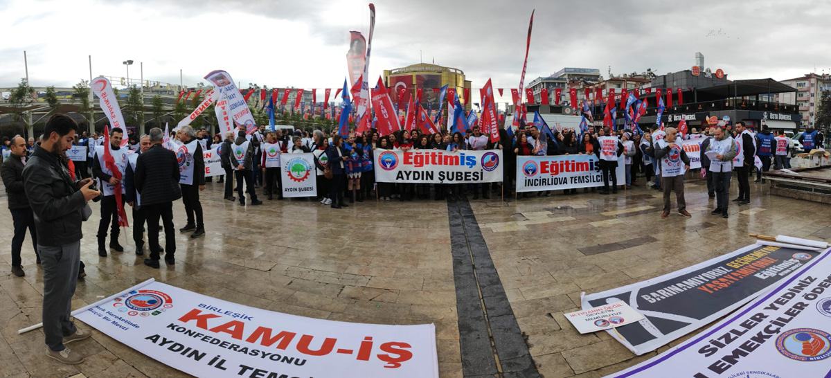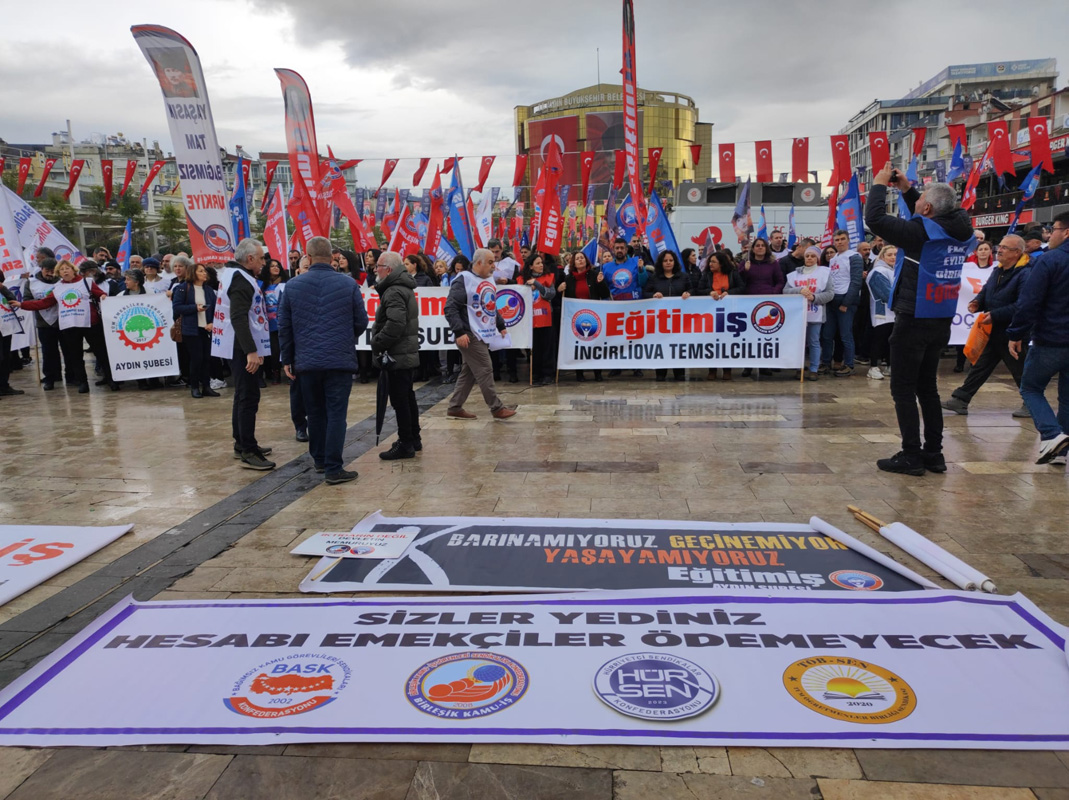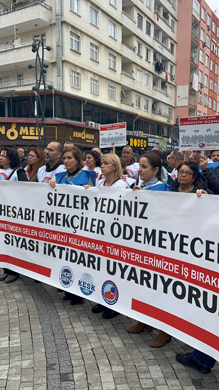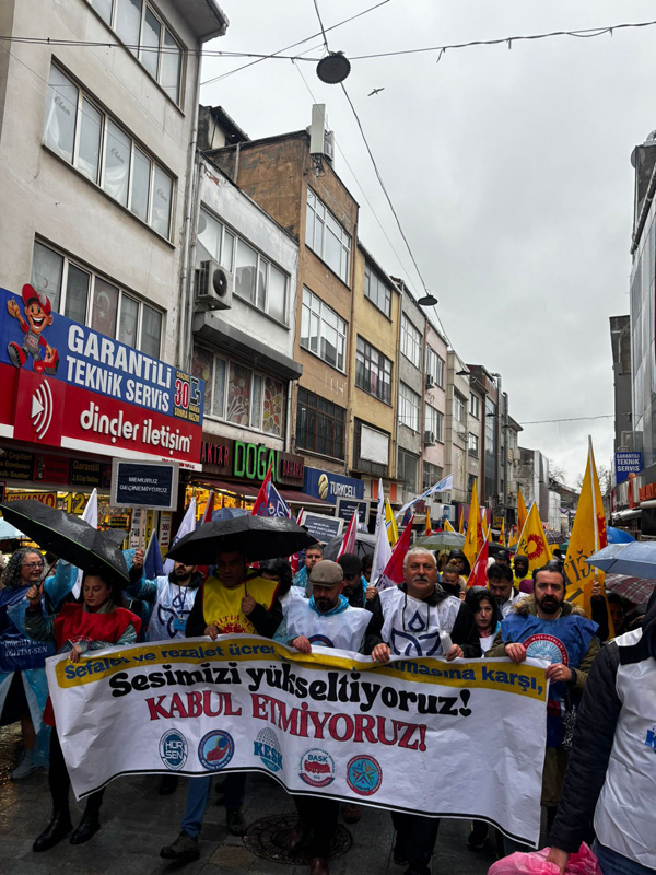 Bugün, emeğimizin değersizleştirilmesine, yaşam şartlarımızın ağırlaştırılmasına, yoksullaştırılmamıza ve insanca yaşam hakkımızın hiçe sayılmasına karşı ülkemizin her köşesinde alanlardayız.