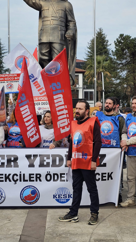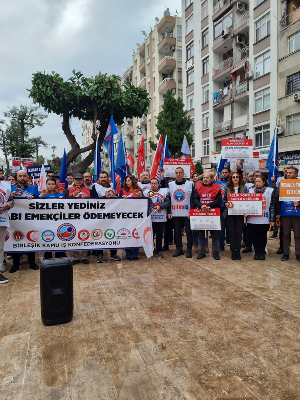 Kamu emekçilerinin maaşlarına %11,54 gibi trajikomik bir zam uygulamak, alın terimize ve emeğimize yapılmış büyük bir hakarettir. Üstelik bu hakaret yalnızca kamu emekçilerini değil, toplumun geniş kesimlerini de derinden yaralamaktadır. Ekonomik krizle her gün biraz daha ağırlaşan hayat koşulları, temel ihtiyaçlarımızı bile karşılayamayacak duruma gelmemize yol açmıştır. Açlık sınırında yaşamaya zorlanan milyonlar olarak, bu düzenin sürdürülemez olduğunu haykırıyoruz!