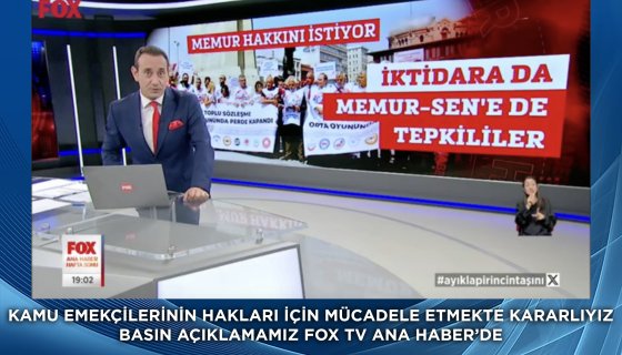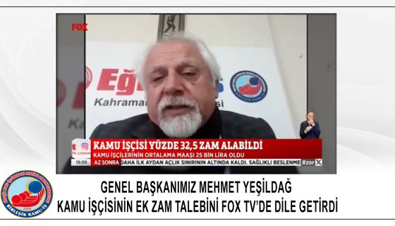 GENEL BAŞKANIMIZ MEHMET YEŞİLDAĞ FOX TV'DE KAMU İŞÇİSİNİN ZAM TALEBİNİ DİLE GETİRDİ-27.01.202431 Ekim 2024, 12:49