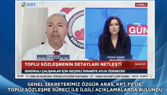 Genel Sekreterimiz Özgür Aras, Krt Tv'de Toplu Sözleşme süreci ile ilgili açıklamalarda bulundu.-04.09.202329 Ekim 2024, 18:12