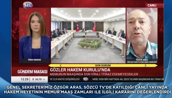 Birleşik Kamu-İş Genel Sekreteri Özgür Aras, Sözcü Tv'de Hakem Kurulu'nun memur zammındaki rolünü değerlendirdi.29 Ekim 2024, 17:53