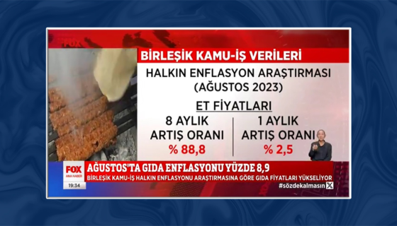 Konfederasyonumuz Ar-Ge birimi KAMUAR tarafından gerçekleştirilen "Halkın Enflasyonu" Araştırması- Ağustos/2023 FOX TV Ana Haberde yayınlandı.29 Ekim 2024, 17:38