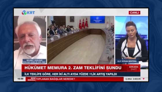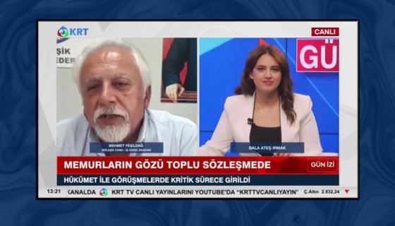 Birleşik Kamu-İş Genel Başkanı Mehmet Yeşildağ, KRT TV’de memur ve memur emeklisini taleplerini dile getirdi.-15.08.202329 Ekim 2024, 16:36