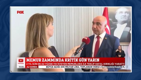 Birleşik Kamu-İş Konfederasyonu Genel Mali Sekreteri Hasan KÜTÜK , FOX TV'de hükümet tarafından açıklanan oranlara tepki göstererek TİS sürecini değerlendirdi.-17.08.202329 Ekim 2024, 16:37