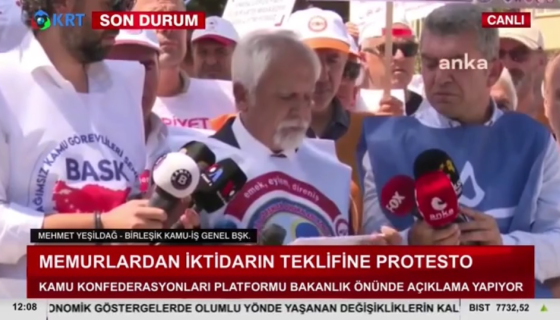 GENEL BŞK MEHMET YEŞİLDAĞ, ÇALIŞMA BAKANLIĞI ÖNÜNDE MEMUR ZAMLARI DEĞERLENDİRDİ KRT TV'DE29 Ekim 2024, 17:29
