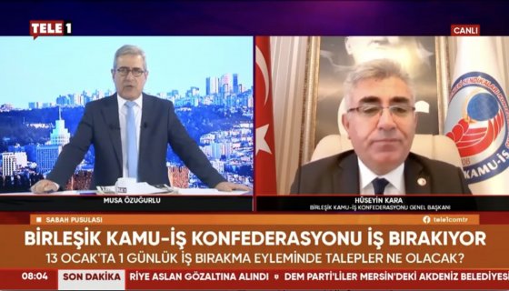 Genel Başkanımız Hüseyin KARA, Tele 1 Tv'de yayınlanan Sabah Pusulası programında Musa ÖZUĞURLU'nun canlı yayın konuğu oldu.10 Ocak 2025, 15:13